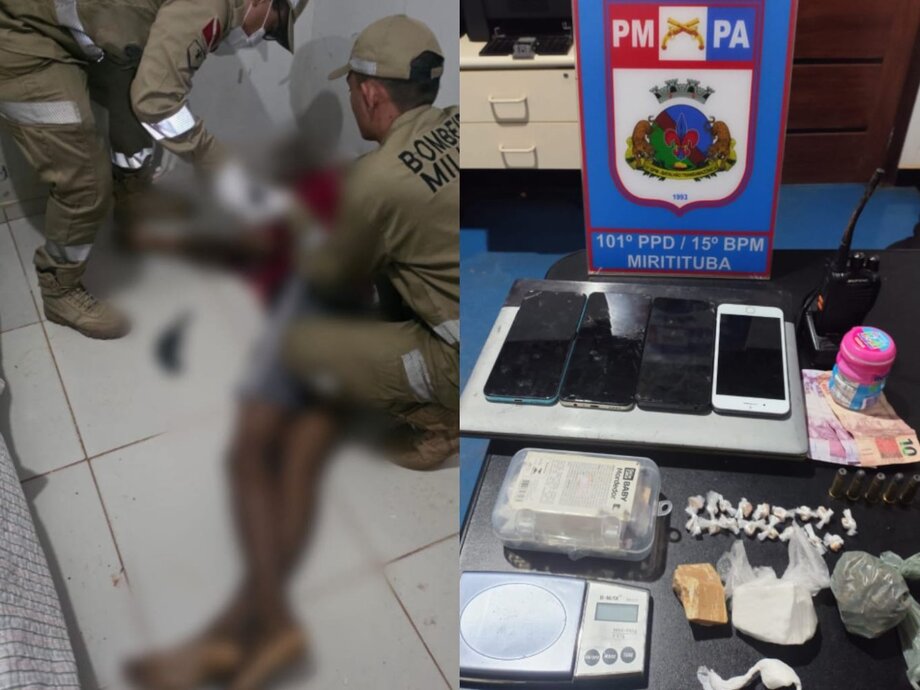 Durante varredura no imóvel, os policiais informaram ter apreendido um revólver calibre 38 com quatro munições, três munições intactas do mesmo calibre e duas deflagradas, quatro aparelhos celulares, uma balança de precisão, 17 trouxas de substância semelhante a crack (8,6 gramas), uma pedra da mesma substância (30,4 gramas), duas embalagens aparentando ser cocaína (60,4 gramas), uma porção semelhante a maconha (23,4 gramas), um rádio comunicador com carregador, um notebook da marca Samsung e R$ 20 em dinheiro.