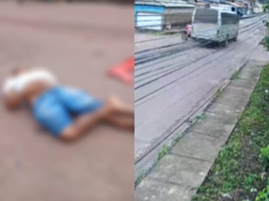 Câmeras de segurança registraram a ação e mostram a colisão que envolveu uma motocicleta e um micro-ônibus. Com o impacto, duas pessoas, um casal que estava na moto, ficaram caídas na via.