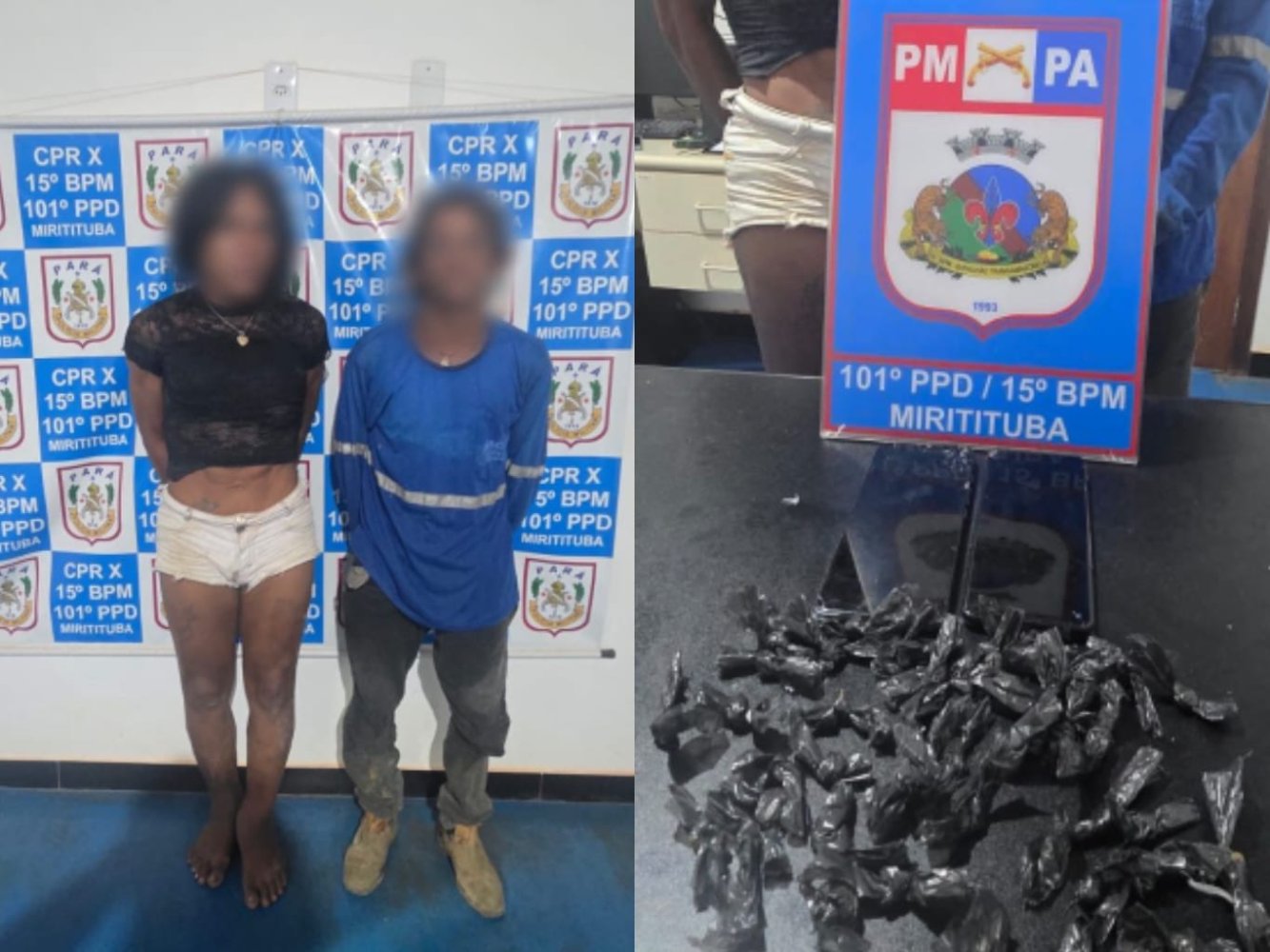 Um homem e uma mulher trans foram conduzidos pela Polícia Militar por suspeita de envolvimento com o tráfico de entorpecentes no distrito de Miritituba, em Itaituba. A ocorrência foi registrada durante rondas realizadas na comunidade do Buritizal, no âmbito da Operação Tolerância Zero.