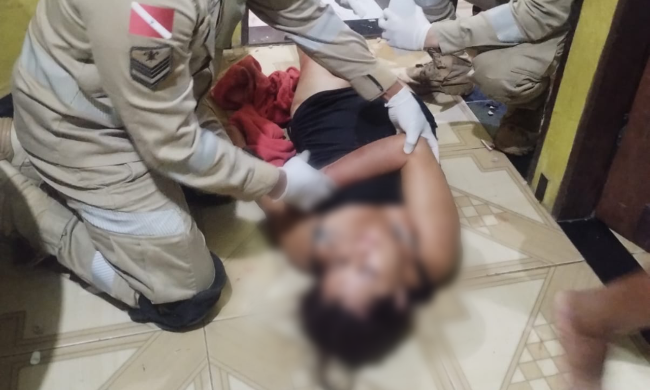 Diante da gravidade do relato, os policiais se deslocaram até o endereço informado. No local, as tentativas iniciais de contato não tiveram resposta, sendo necessário o acesso forçado ao imóvel. A mulher foi encontrada desacordada no interior do banheiro.