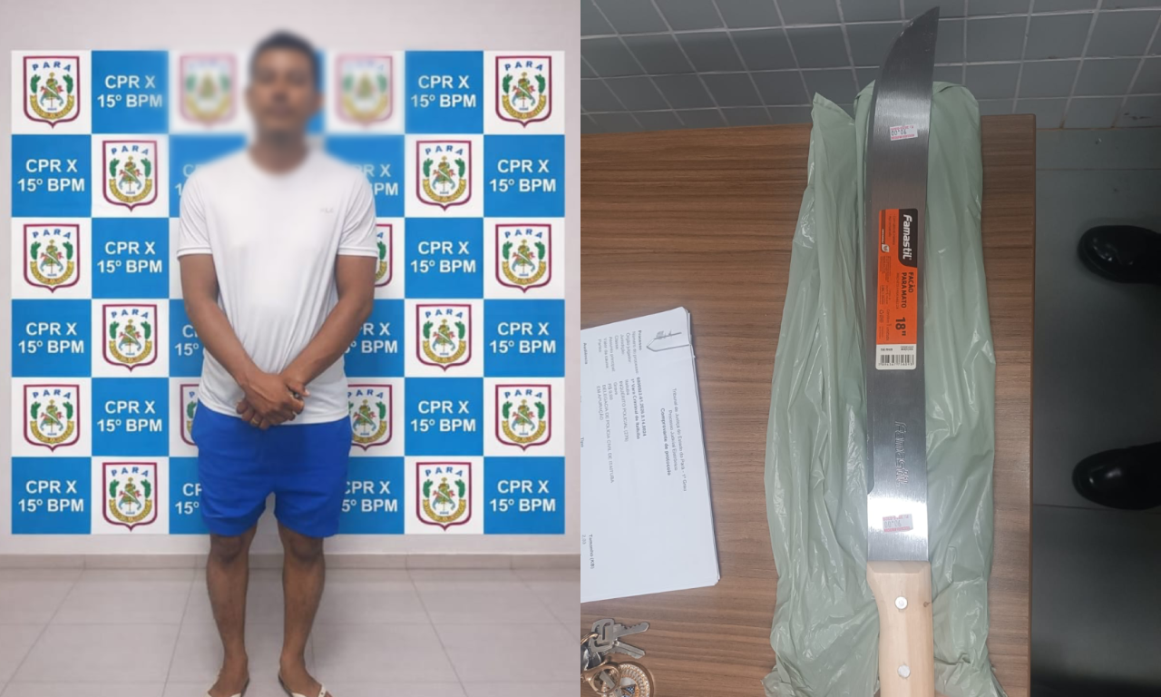 No momento da abordagem, o homem deixou o local em seu veículo, sendo posteriormente interceptado por uma guarnição policial após acompanhamento. Durante a verificação, foi realizada busca no automóvel, onde foi encontrado um facão novo, ainda com etiqueta, acondicionado em uma sacola.