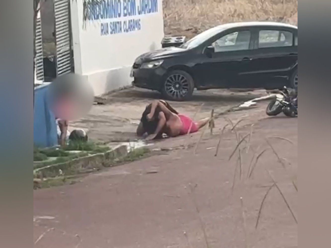 Nas imagens, é possível ver o momento em que o homem e a vítima estão no chão, enquanto ele desfere agressões. A violência ocorreu na frente de uma criança pequena. Segundo informações repassadas à reportagem, o homem teria retirado a criança dos braços da mulher antes de iniciar as agressões.